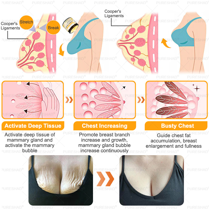 It aids in the firming, lifting, and enlargement of breasts while offering relief from breast pain. Additionally, it serves as a valuable support for various health conditions, including Breast Cancer, Fibrocystic Breasts, Mastectomy, and Post-Operation Care. Excessive estrogen is the primary contributor to breast pain, influenced by factors such as age, nutrition, pregnancy, and hypothalamic-pituitary diseases. To restore estrogen balance in women and alleviate breast pain, we have meticulously developed an all-natural formula. Not only does this essential cream effectively prevent and treat breast diseases, but it also enhances overall health.